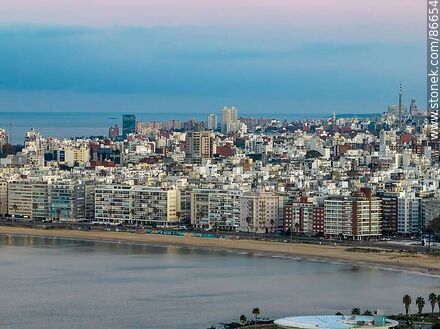 Vista aérea de la rambla Rep. del Perú y los edificios del barrio Pocitos antes de la salida del sol | Foto #86654