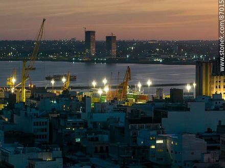 Vista aérea de la Ciudad Vieja, bahía y el barrio La Teja al alba | Foto #87015