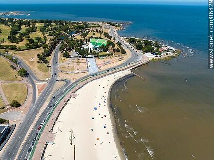 Aerial view of Ramirez beach, Wilson promenade, Summer Theater, Golf Club, fishermen's clubs and the Rio de la Plata
