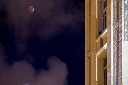 Total lunar eclipse on March 14, 2025. With the Mercosur headquarters in Montevideo in front of Ramirez beach. - Department of Montevideo - URUGUAY. Photo #86506 stonek
