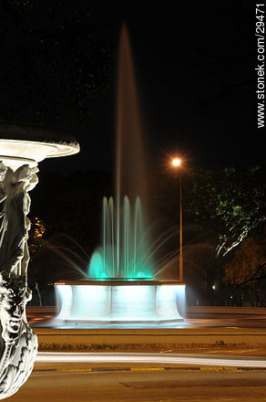 Esta foto no es fácil conseguirla. Que esta fuente tenga luces y chorros de agua es todo un logro. Cada tantos años podemos disfrutarla por un corto lapso. Ya no más (2011). Primero se quedó sin luces y finalmente se quedó sin agua. Pasarán años hasta que la burocracia resuelva algo, reparaciones, andá a saber.