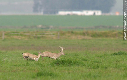 Casal de ciervos silvestres corriendo por el campo | Foto #30609