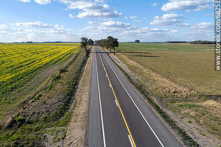 Vista aérea de la ruta 14. Campo de flores amarillas de canola a la izquierda | Foto #68251
