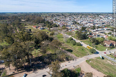 Vista aérea de la ruta 11 vieja, la vía férrea y la estación de ferrocarril | Foto #68331