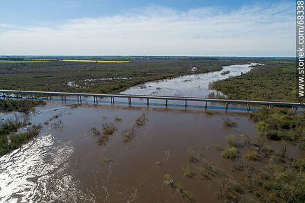 Vista aérea de la ruta 11 sobre el río Santa Lucía crecido | Foto #68338