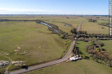 Vista aérea de la ruta 42 mirando al norte. Puente sobre el arroyo Blanquillo | Foto #69113