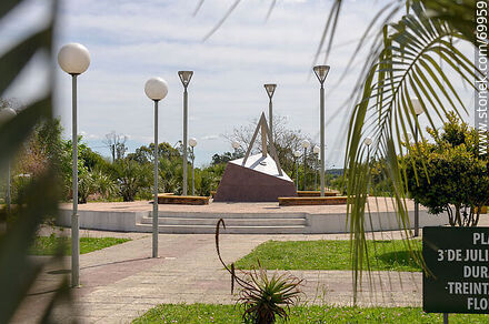 Plaza 3 de Julio de 1927. Cartel que evoca que la ciudad tiene territorio en tres departamentos