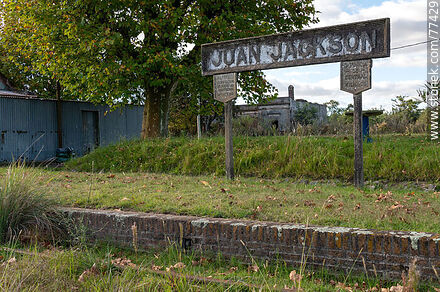 Estación de trenes Juan Jackson convertida en biblioteca. Cartel de la estación y el andén de ladrillos | Foto #77429
