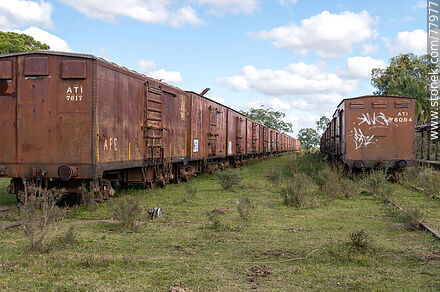 Antigua estación de ferrocarril Julio M. Sanz. Filas de vagones de carga en vías secundarias | Foto #77977
