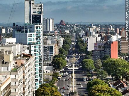 Foto aérea de Bulevar Artigas, la torre del Congreso, la cruz del Papa, el monumento parábola a Luis Battle Berres y la iglesia de Cerrito | Foto #78983