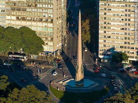 Vista aérea del Obelisco a los Constituyentes de 1830 en la intersección de las avenidas 18 de Julio, Luis Morquio y Bvar. Artigas | Foto #86618