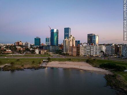 Vista aérea de la playa del Buceo, rambla Armenia, edificios y torres del Buceo antes de la salida del sol | Foto #86636