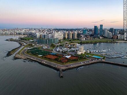 Vista aérea del Yacht Club, puerto del Buceo y las torres próximas a la rambla antes de la salida del sol | Foto #86639