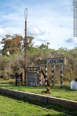 Antigua estación Islas de La Paloma en el Km. 296 de la vía ferroviaria al Km. 329. Anden y cartel de la estación
